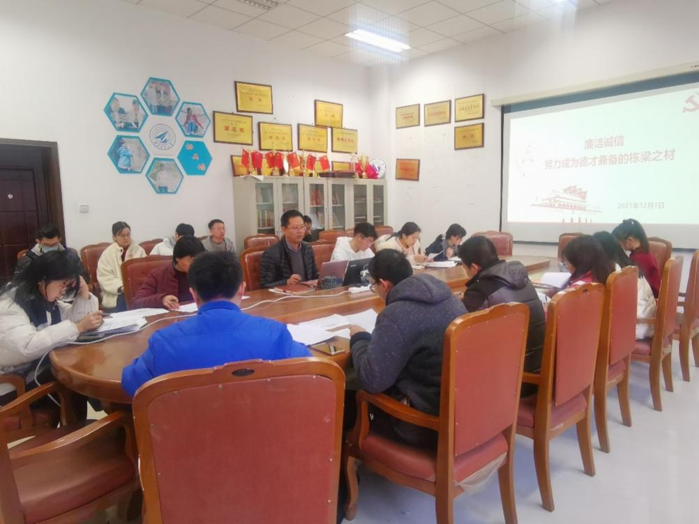12月1日,在PP电子游戏网站130会议室,PP电子游戏网站党委副书记万海东讲授了“廉洁诚信——努力成为德才兼备的栋梁之材”主题党课。学院党委组织员李霞、辅导员高云和全体学生党支部书记参加了本次廉洁诚信教育主题党课。