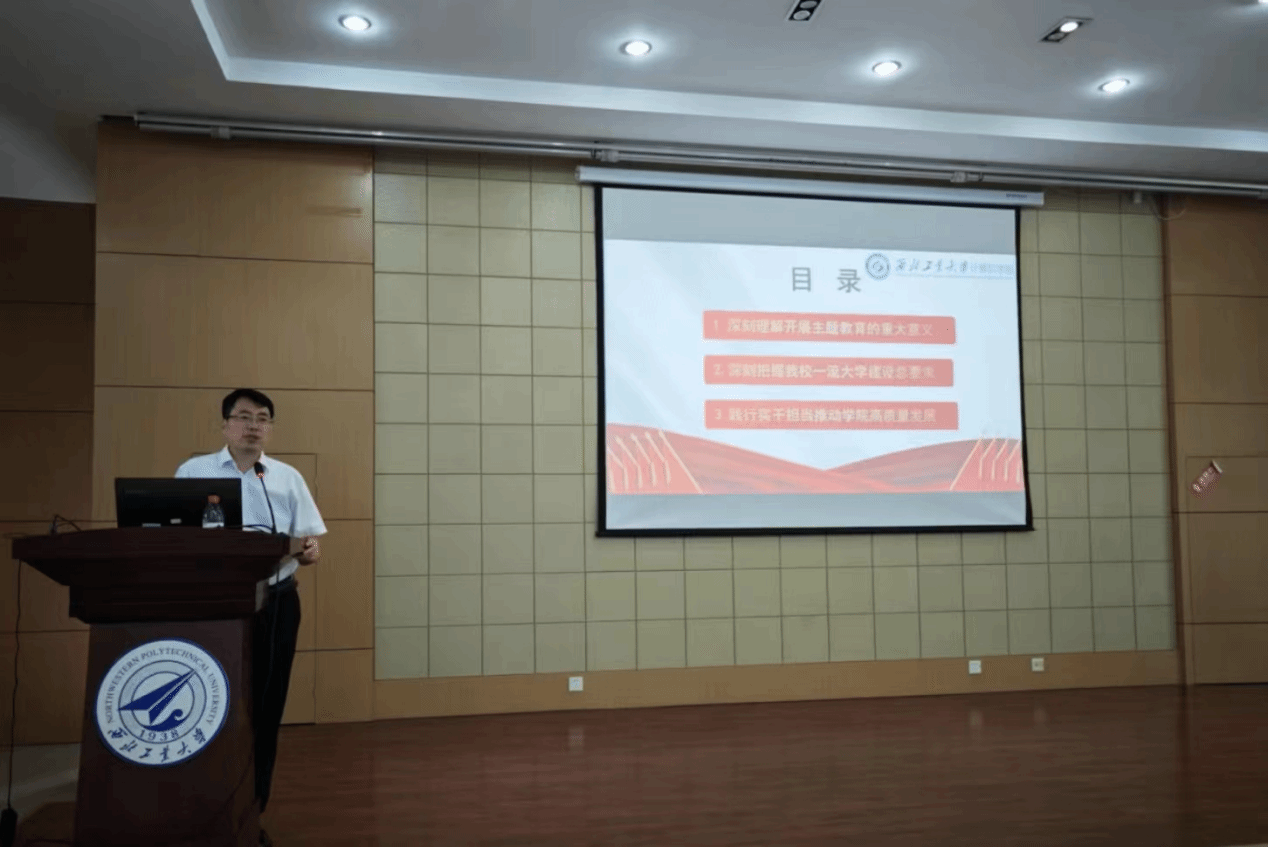 李春科从深刻理解开展主题教育的重大意义、深刻把握我校一流大学建设总要求、践行实干担当推动学院高质量发展三个方面展开论述。一是通过深入阐述开展主题教育的时代背景、重大意义和总要求,习近平新时代中国特色社会主义思想的科学体系、丰富内涵和精髓要义,学院在推动学院主题教育走深走实方面的具体行动等,带领师生在学思践悟中站稳政治立场、坚定政治方向,鼓励师生争做“四有”好老师和有理想、有本领、有担当的新时代青年。二是围绕习近平总书记“要把高等教育作为建设教育强国的龙头”的要求,传达最近学校党委书记李言荣主题教育专题党课精神,深刻把握学校“双一流”建设和高质量内涵式发展的总要求。三是立足于学院实际,通过对标国内外一流高校,分析学院在发展中存在的问题与差距,坚持问题导向、目标导向,梳理下一步的发展思路和重要举措,以建设一流学院、一流学科为目标,奋力谱写PP电子游戏网站建设新篇章。