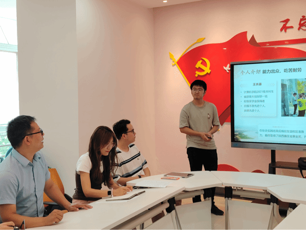 在社会实践先进个人的答辩环节中,纪亚鹏、张志翔、张田田、李卓远、王水源五位同学先后进行了个人答辩,讲述了自己在社会实践项目中的主要工作,展现了个人在组织活动、 行程规划、对外联络、团队协作、报告撰写等多方面的风采,与此同时也进一步展示了各自实践项目的特色。