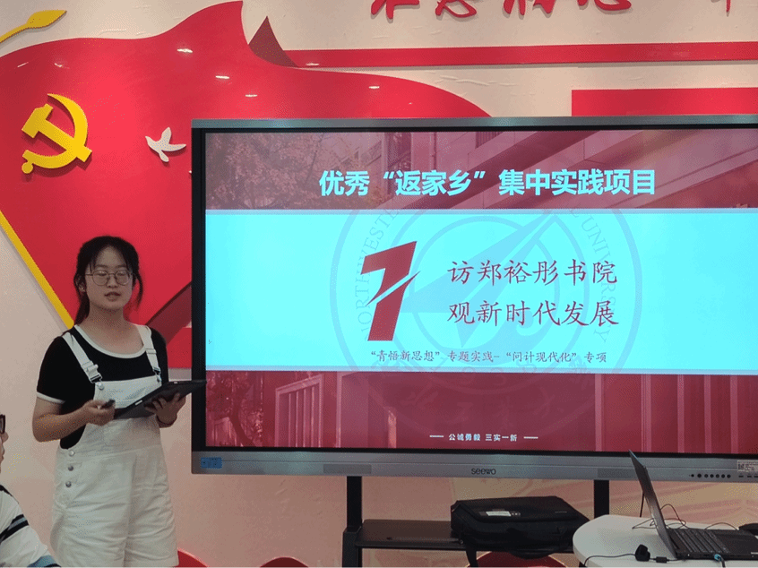 答辩会第一项是“返家乡”实践项目答辩,“访郑裕彤书院,观新时代发展”和“寻访乡村故里,擘画振兴“篮”图”两支队伍分别从项目背景、实践流程及实践成果等方面,讲述了团队在实地实践中的收获与感悟。
