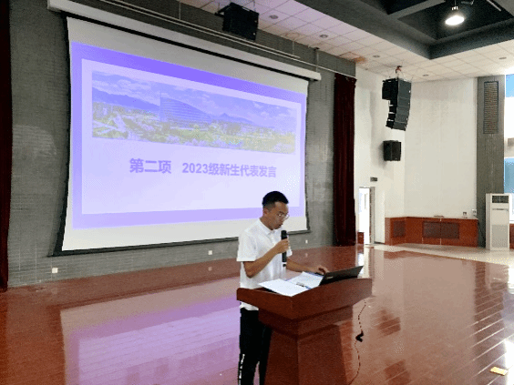 会议第二项,由2023级本科生冯炳宝代表全体新生发言。他表达了进入PP电子游戏网站大家庭的激动心情,也分享了自己所树立的远大理想抱负,呼吁同学们当以康继昌等老一辈计算机人为榜样,勤学苦读,精益求精,扎实钻研专业知识,坚持攻坚克难,弘扬科学家精神,立志做“总师型”人才,为祖国科技和国防事业进步贡献力量。