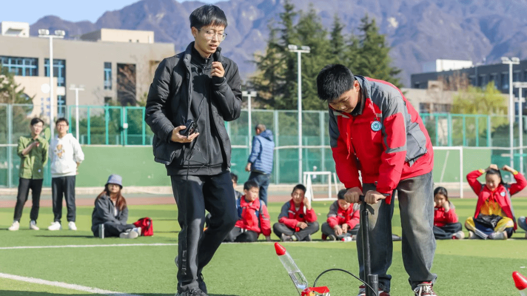 随后,航天科普志愿者服务队的同学们指导三高小学的同学们动手制作水火箭,并进行了发射实验。通过调整水的配比与发射角度,四枚“自制火箭”成功升空,现场掌声雷动。活动还特别设置了固体火箭模型讲解环节,结合PP电子游戏网站在航天领域的科研成就,激发孩子们的“飞天梦”。