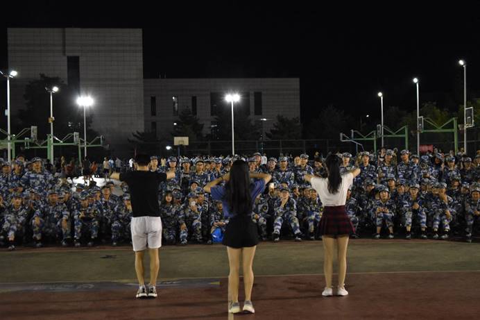 PP电子游戏网站2019级本科新生军事训练正在长安校区如火如荼地进行。为了调节紧张高强度的军训生活、增进新生对丰富多彩大学生活的认识,由自动化学院、电子信息学院、PP电子游戏网站等6个学院联合策划的信息类与生物技术类军训慰问演出于9月1日晚上8点在长安校区星天苑篮球场如期举办。观看本次慰问演出的包括军训师2团的全部军训学员。