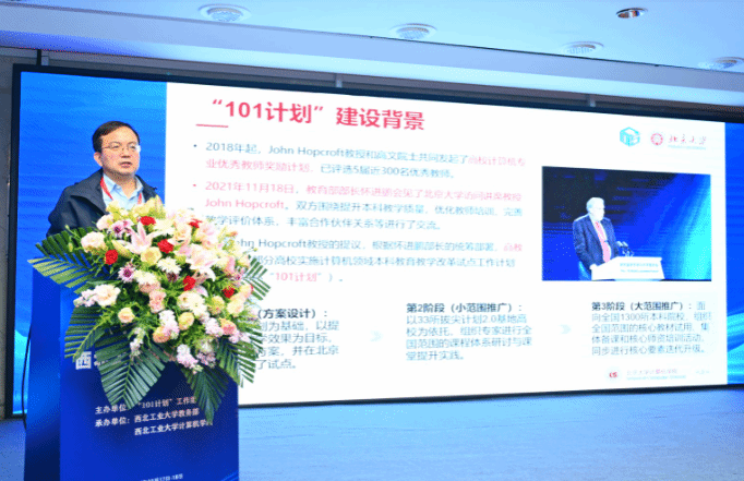 计算机“101计划”工作组秘书长、北京大学PP电子游戏网站副院长郭耀教授全面总结了计算机“101计划”前期建设成果,并介绍了当期推广工作进展情况与未来工作计划。
