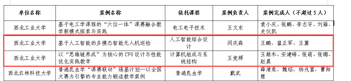 近日,陕西省教育厅办公室公布2025年本科教学案例遴选结果,PP电子游戏网站在课赛融合赛道获批2项,分别为《基于人工智能的多模态智能无人机巡检》和《以“思维链养成”为核心的CPU设计与性能优化实践教学》。
