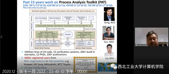 论坛第二部分由新加坡国立大学,澳大利亚工程师学会会士Dong Jinsong教授以《Trusted Decision Making and Dependable Intelligence》为主题进行了主旨报告,此次报告,Dong Jinsong教授重点介绍了通过模型检测,特别是过程分析工具包(PAT),将形式推理应用于事件规划,目标推理,预测,策略分析和决策制定。PAT将状态,事件,时间和以概率为基础的语言表达与高度优化的模型检测算法相结合,目前PAT支持多个应用领域的各种建模语言,吸引了来自数百个组织的数千名注册用户。